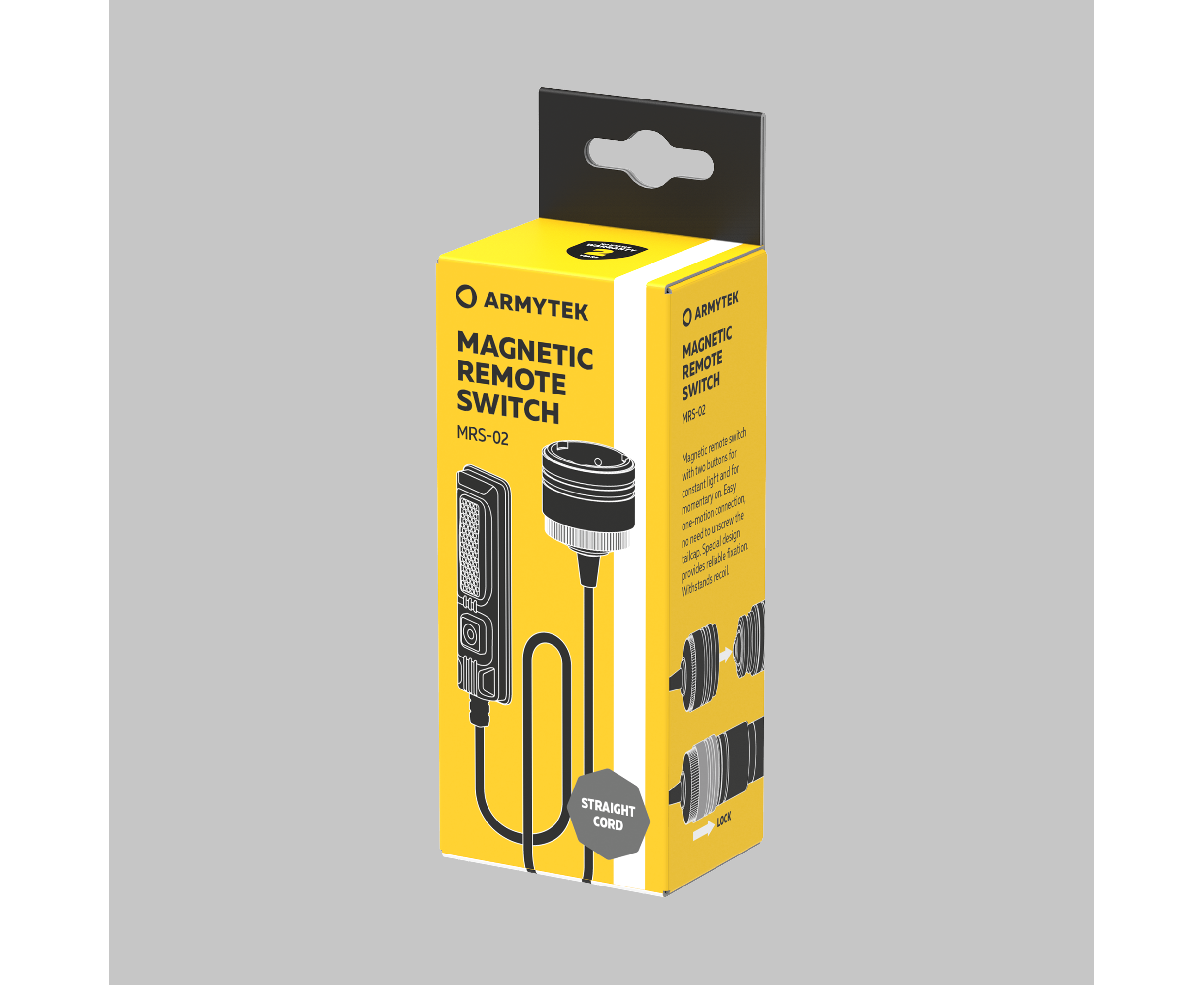 Magnetic remote switch with two buttons for constant light and for momentary on (only when the button is pressed). There is no need to unscrew the tailcap for installation: the remote switch is attached directly to the magnetic connector in just one motion, while the special design provides reliable fixation. Withstands recoil.