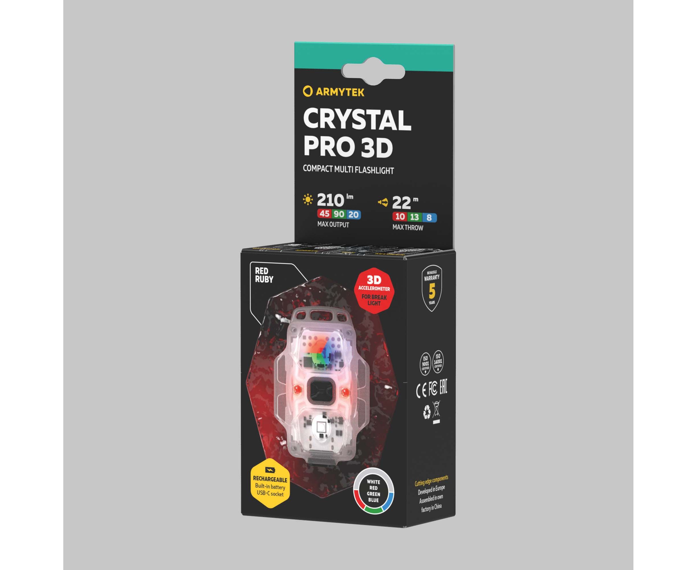 A model from the updated lineup of compact multi flashlights. Crystal Pro 3D is a revised version of Crystal Pro. It retained the bicycle brake light function of the previous model while gaining more additional light color options. Not just white and red outputs, but also green and blue ones now ensure the versatility of use in everyday or professional activities.