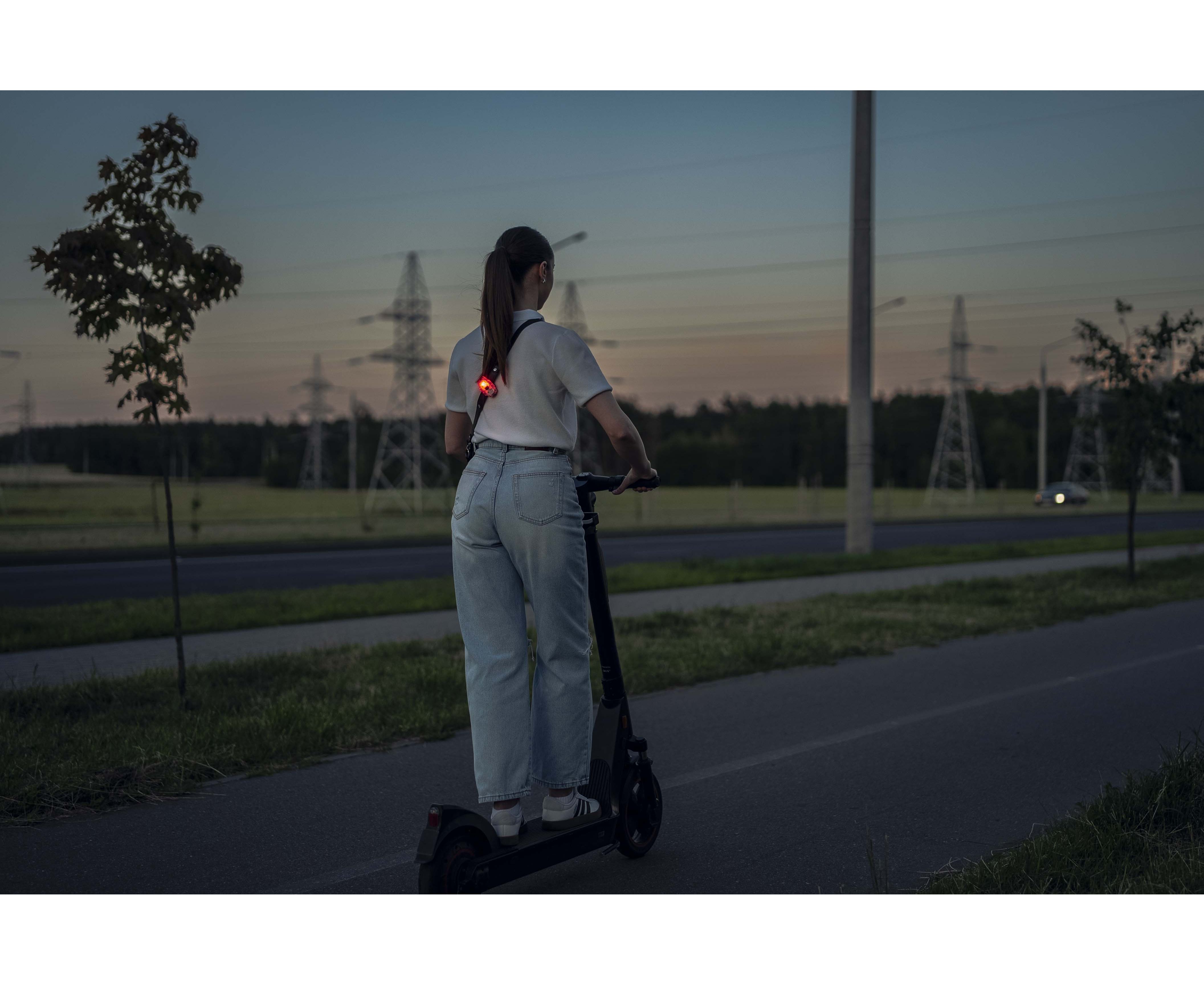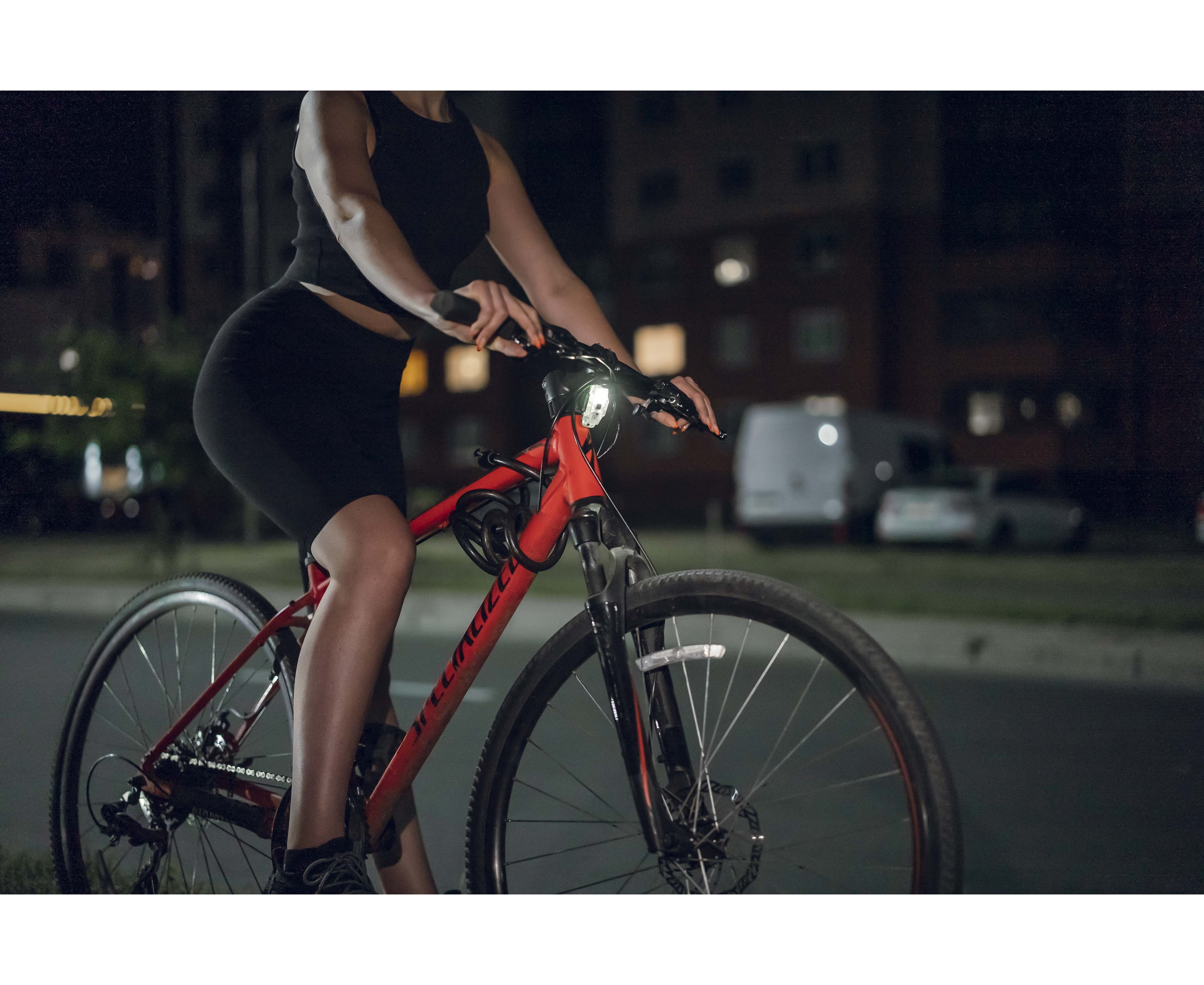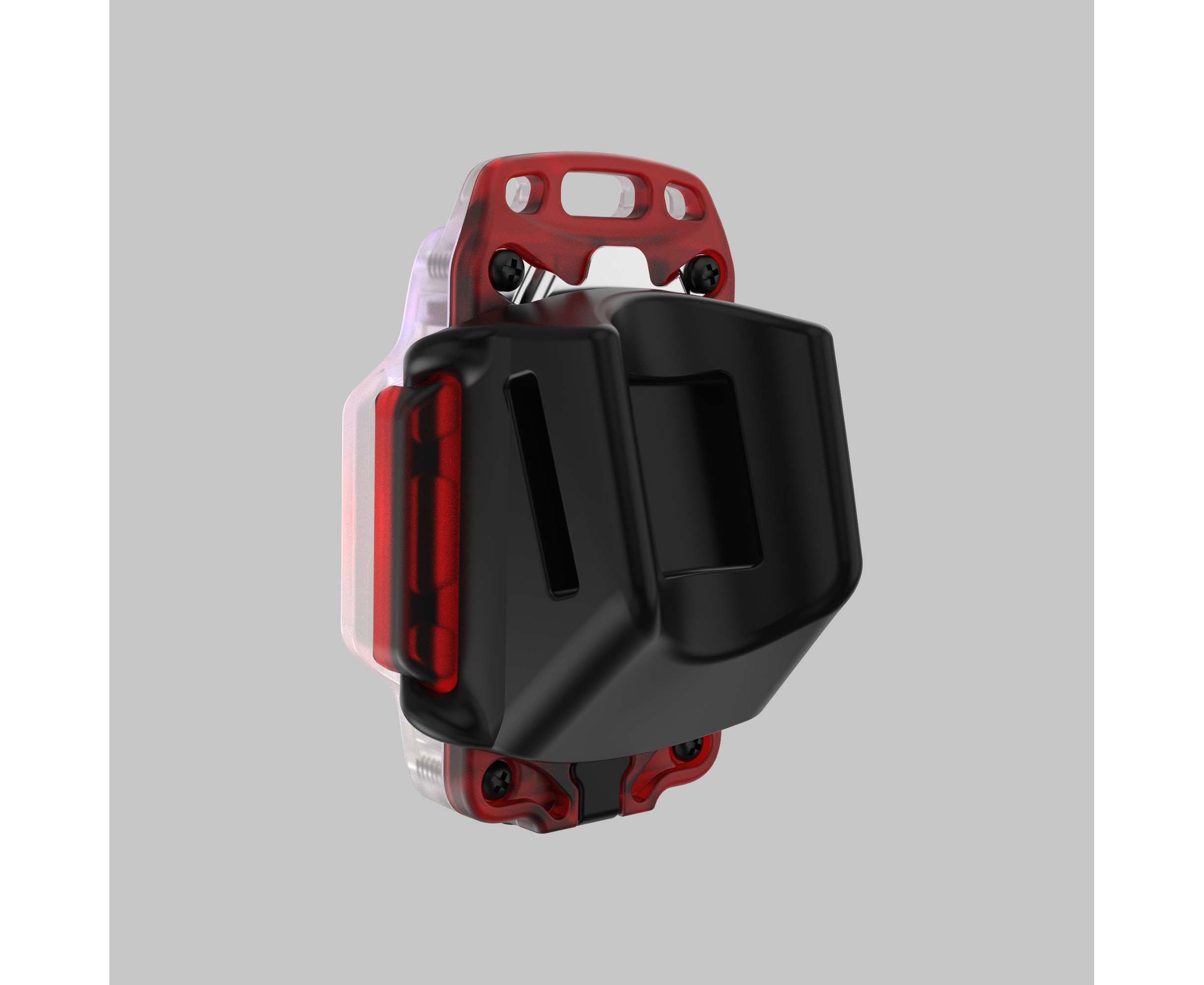- 3 red LEDs and built-in 3D accelerometer. Highly sensitive sensors detect bicycle deceleration, after which additional red LEDs turn on and the brightness of the flashlight increases