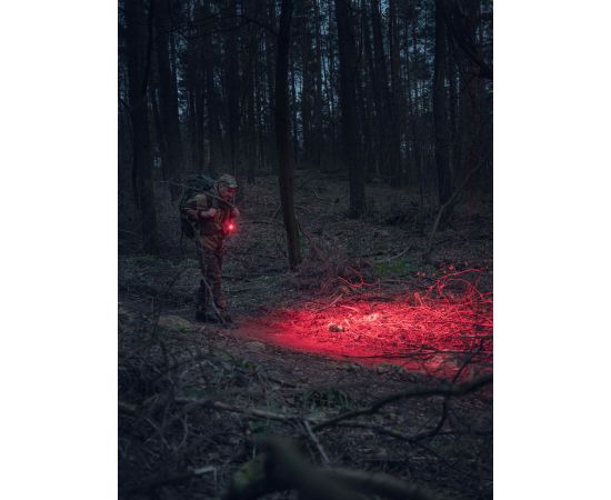 Perfect as primary or additional light source for any situation. The flashlight is suitable for performing tasks in the dark or maintaining night vision when interchanging between turning the light on and off: in a camping tent, when reading maps or observing the stars, for fishing, hunting or professional application.
