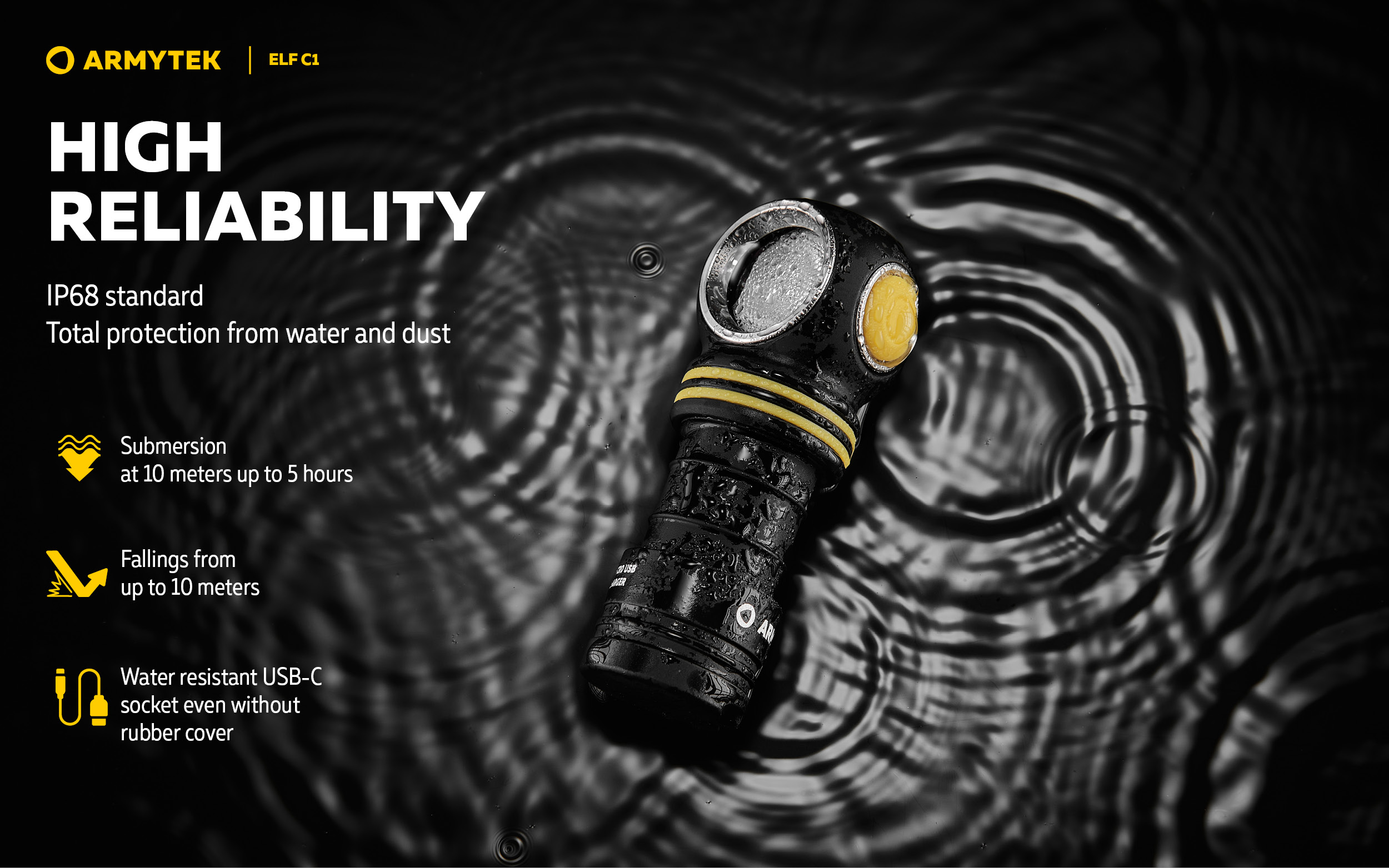 - Robust and water resistant USB-C socket even without rubber cover.