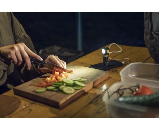 1000 lumens in a body weighing only 55 grams. Elf C1 is a great main or additional light source for any daily activity. You can take the flashlight with you for an evening walk, when fishing or hiking. It will easily fit in any bag and won't require recharging throughout 2 months of minimum brightness. Elf C1 also works in a lamp mode — directly from any power supply with USB output, no battery inside. The universal charging slot eliminates the need to constantly carry the charger around: a standard USB-C cable from any manufacturer will do.