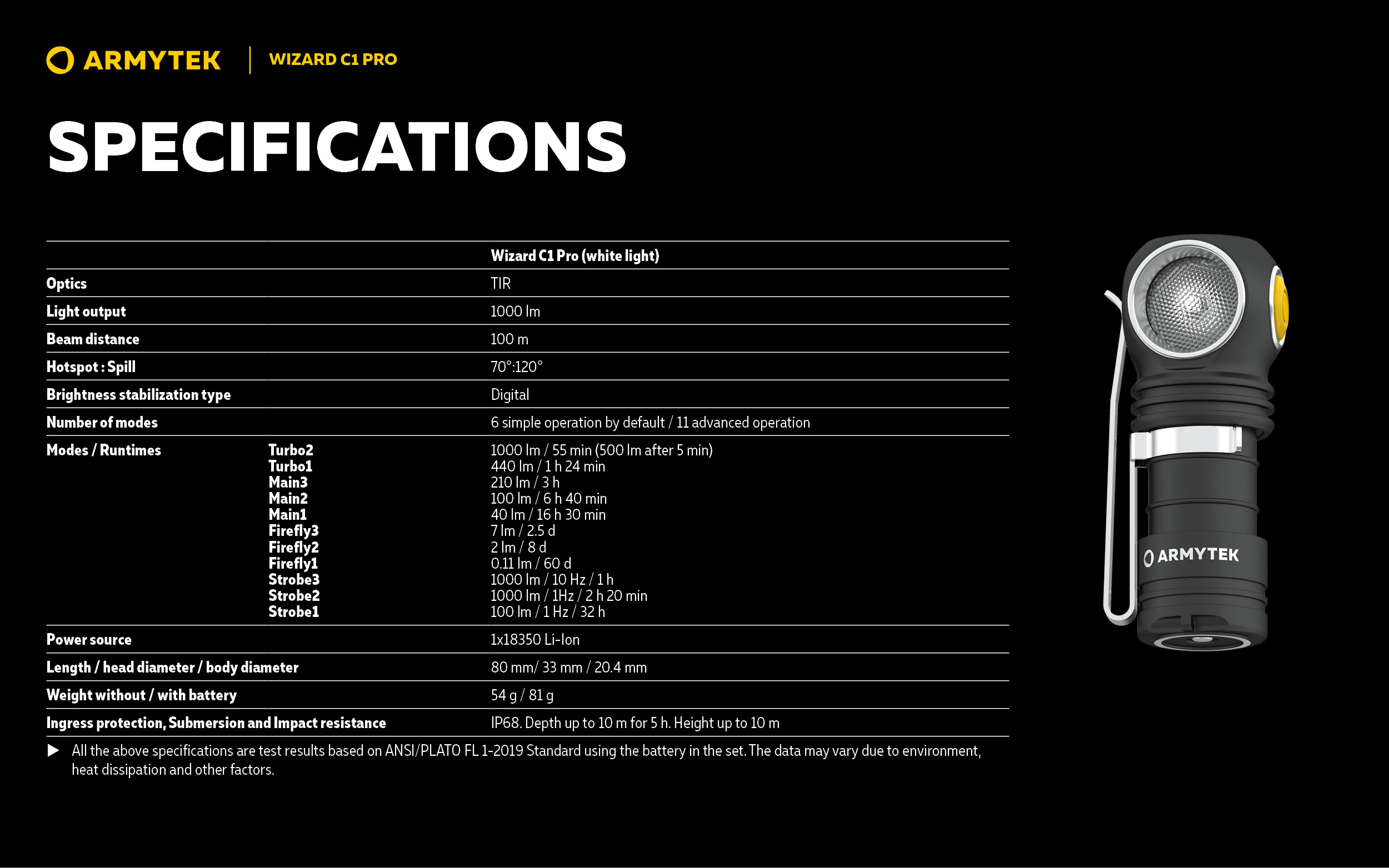 Wizard C1 Pro is a compact and lightweight multi flashlight with professional advanced operation.
