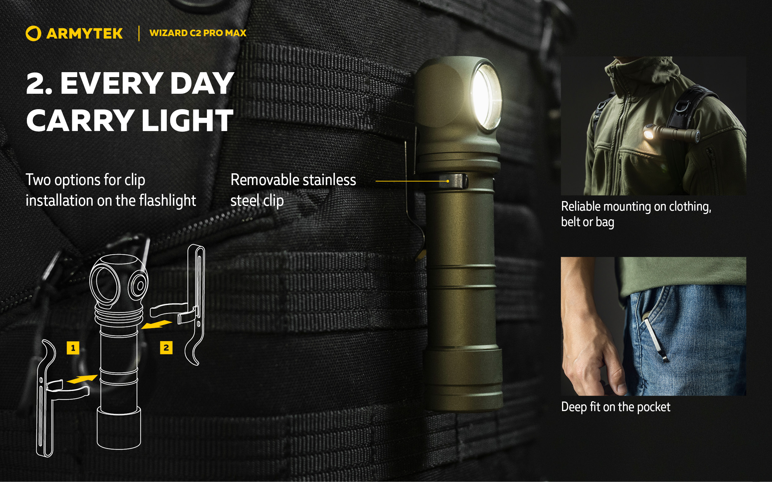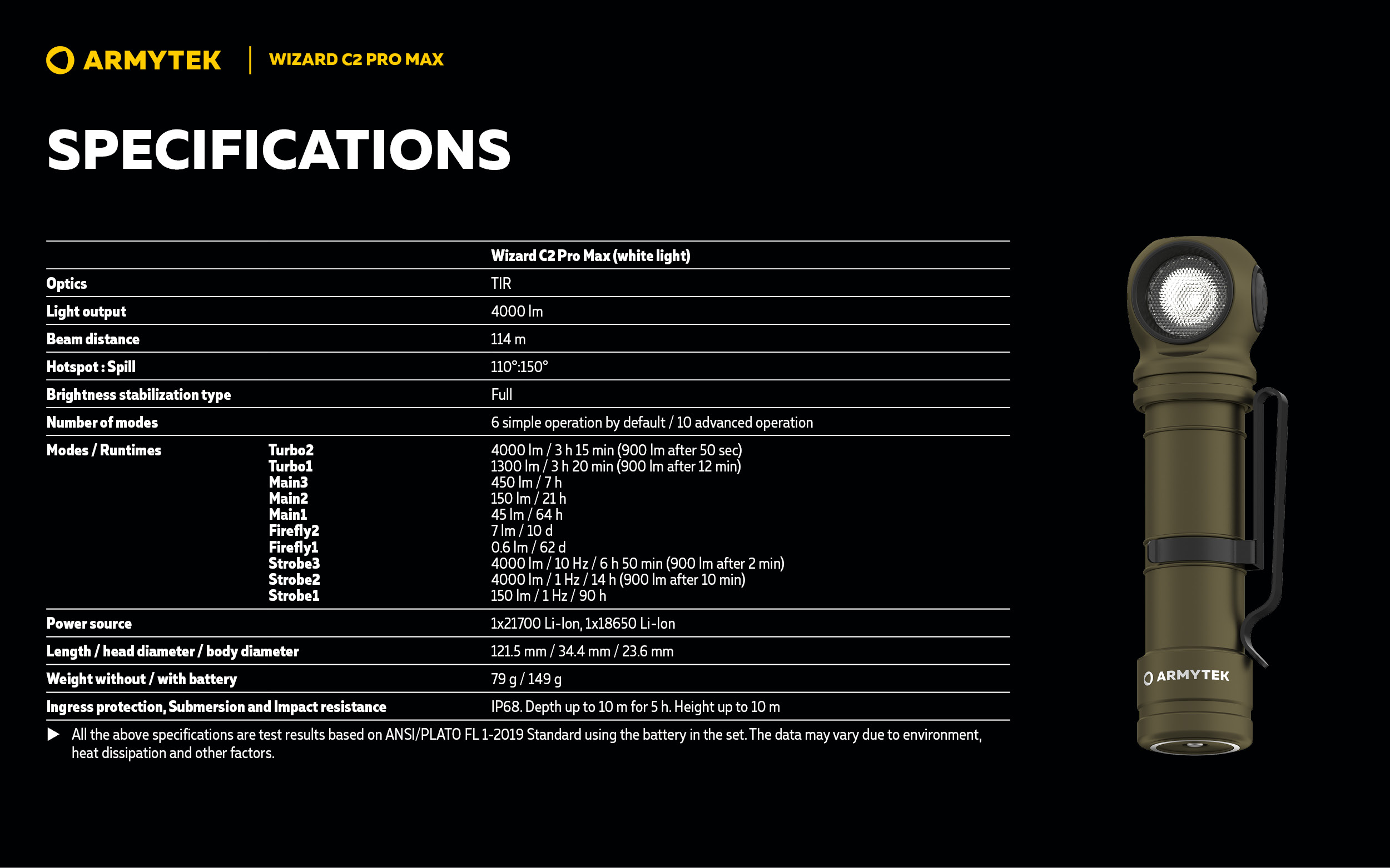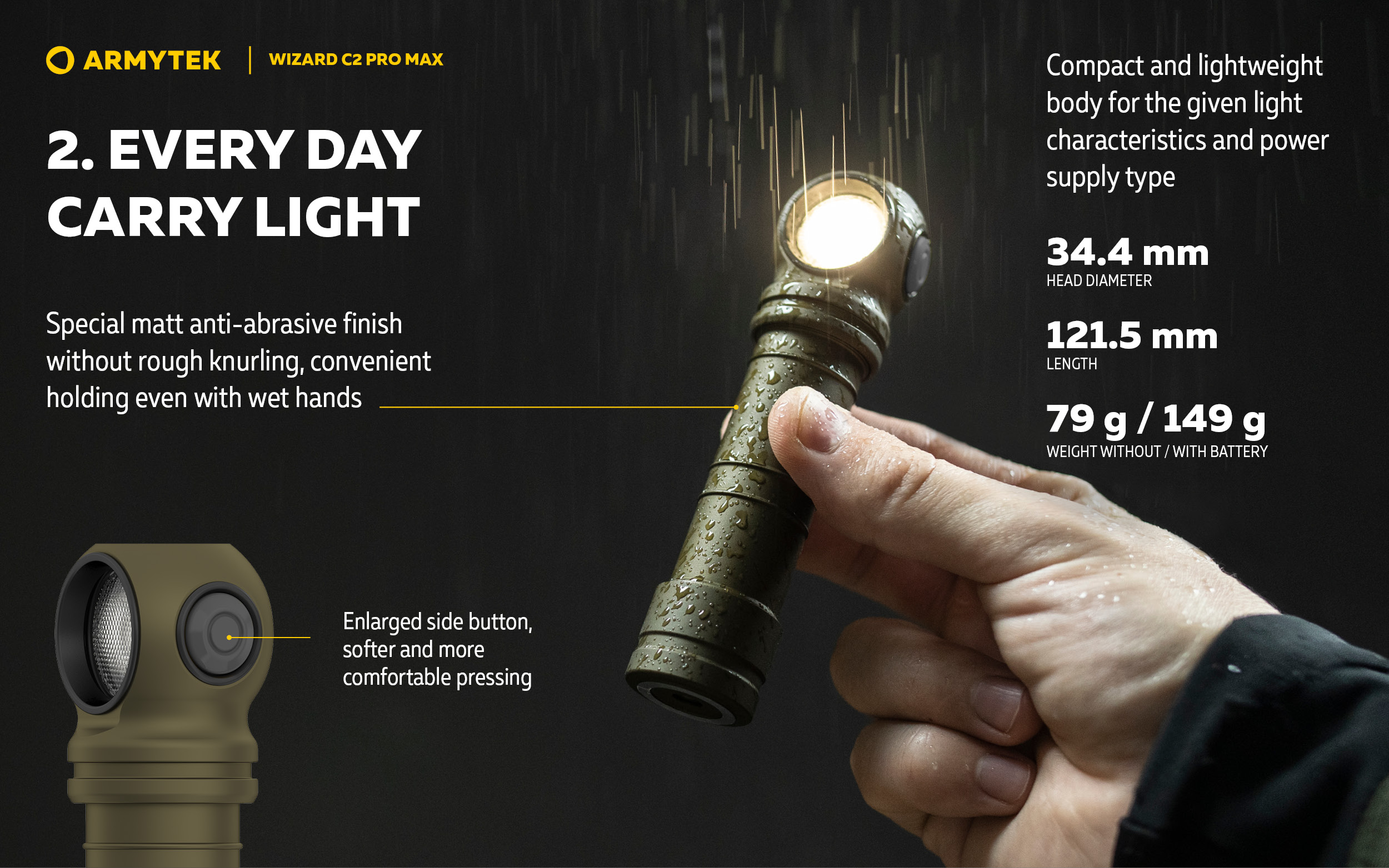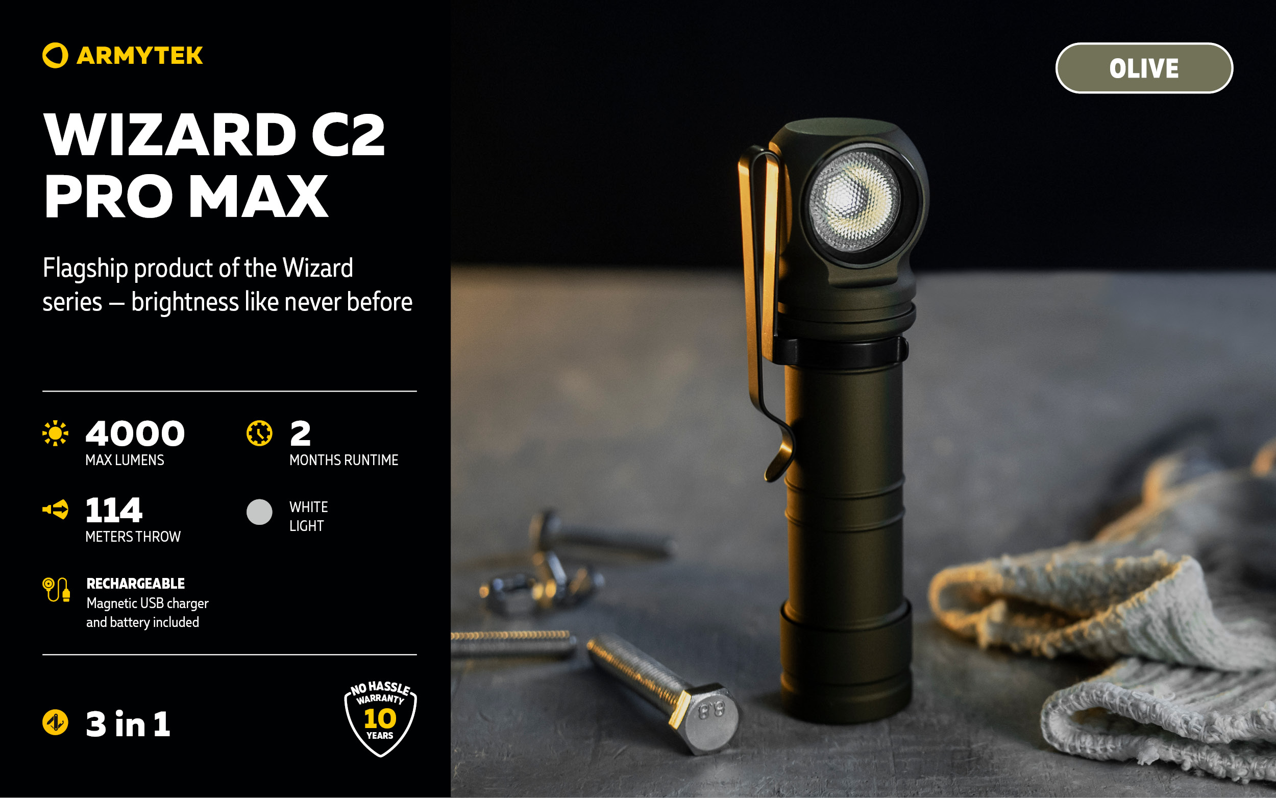 Wizard C2 Pro Max is the newest model of the demanded all over the world multifunctional Armytek Wizard lineup. Not just bright, but astonishing light output of 4000 lumens.