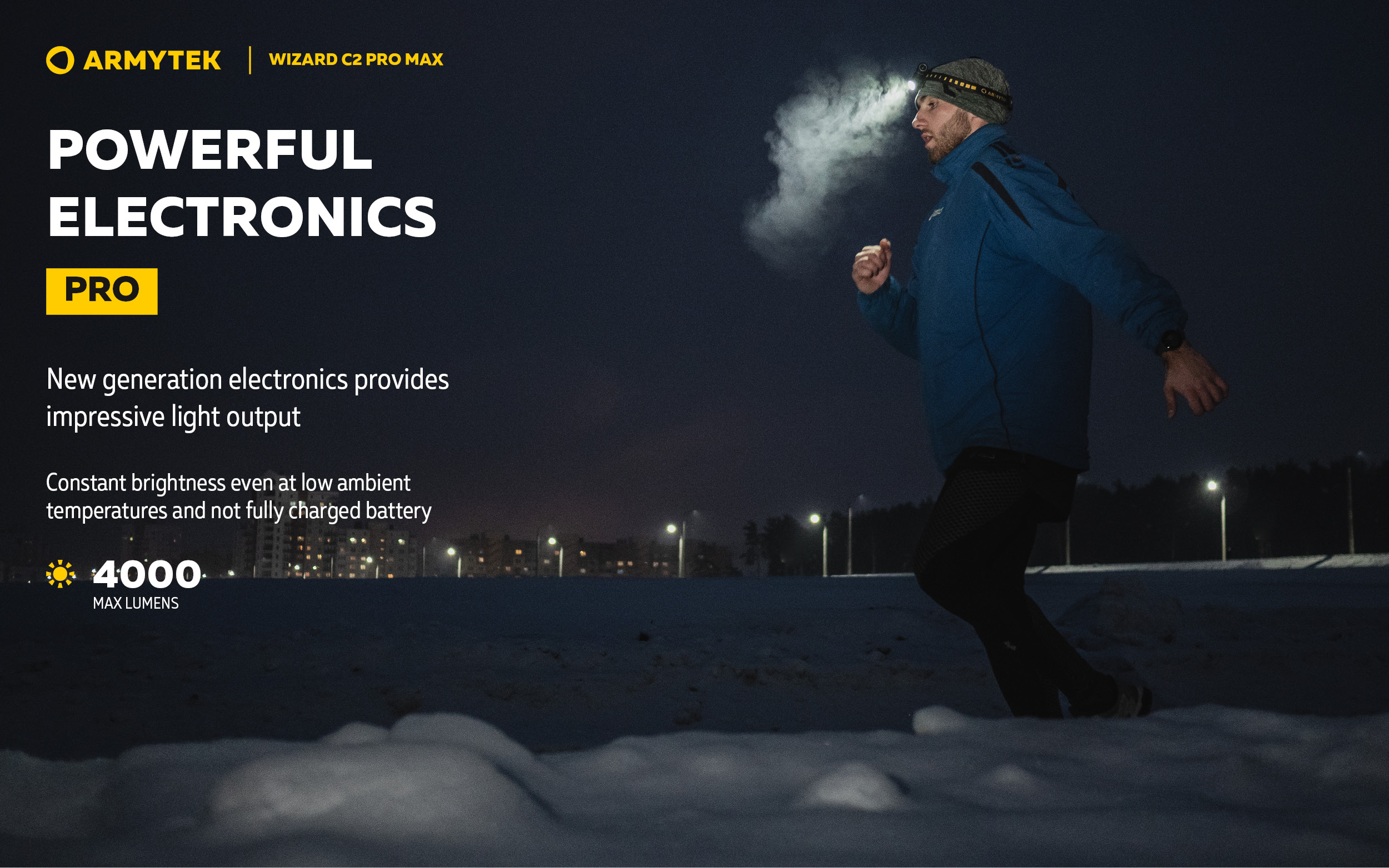 - Pro Max New generation electronics provides impressive light output of 4000 lumens. Constant brightness even at low ambient temperatures and not fully charged battery.
