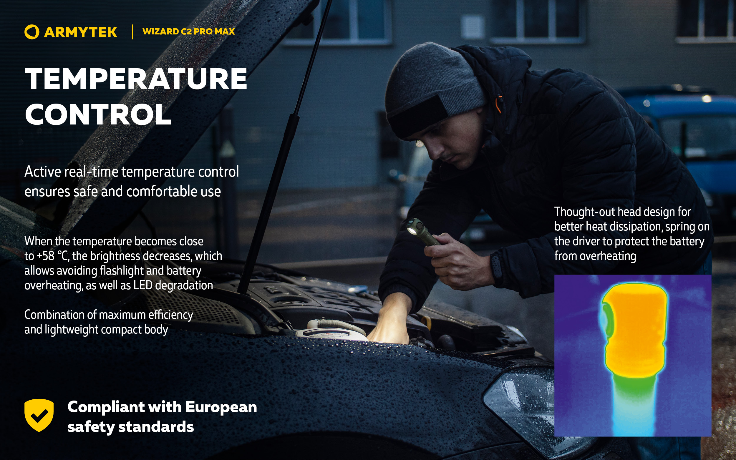 - Active real-time temperature control to prevent overheating above +58 °C.
