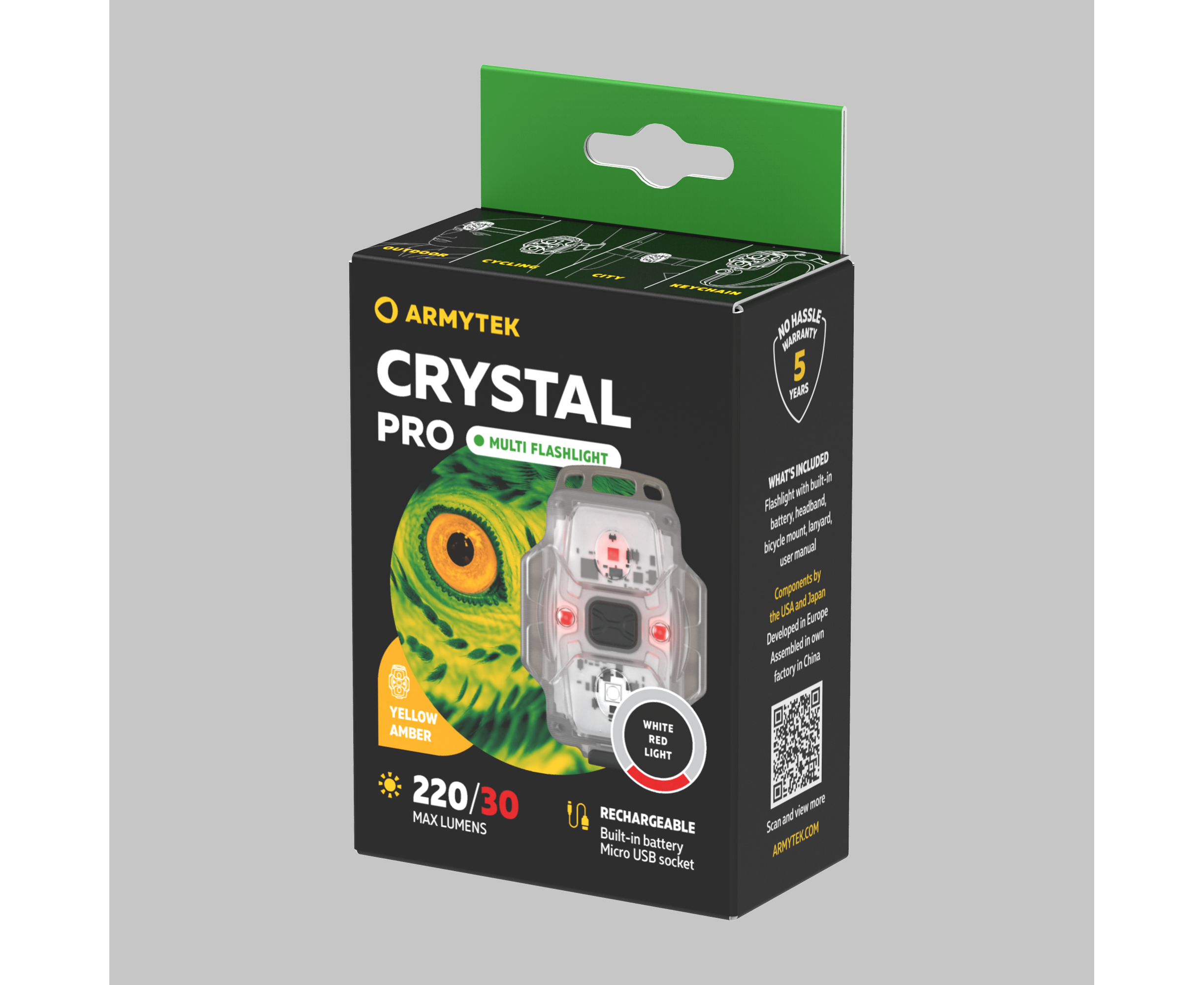 Bicycle brake light is a new feature of the Armytek compact multi flashlight, which significantly expands the areas of application. Specially for use as a brake light, Crystal Pro is equipped with a built-in 3D accelerometer. Highly sensitive sensors detect bicycle deceleration, after which additional red LEDs turn on and the brightness of the flashlight increases to 43 lumens. An included bicycle mount securely fixes the flashlight on a bike.
