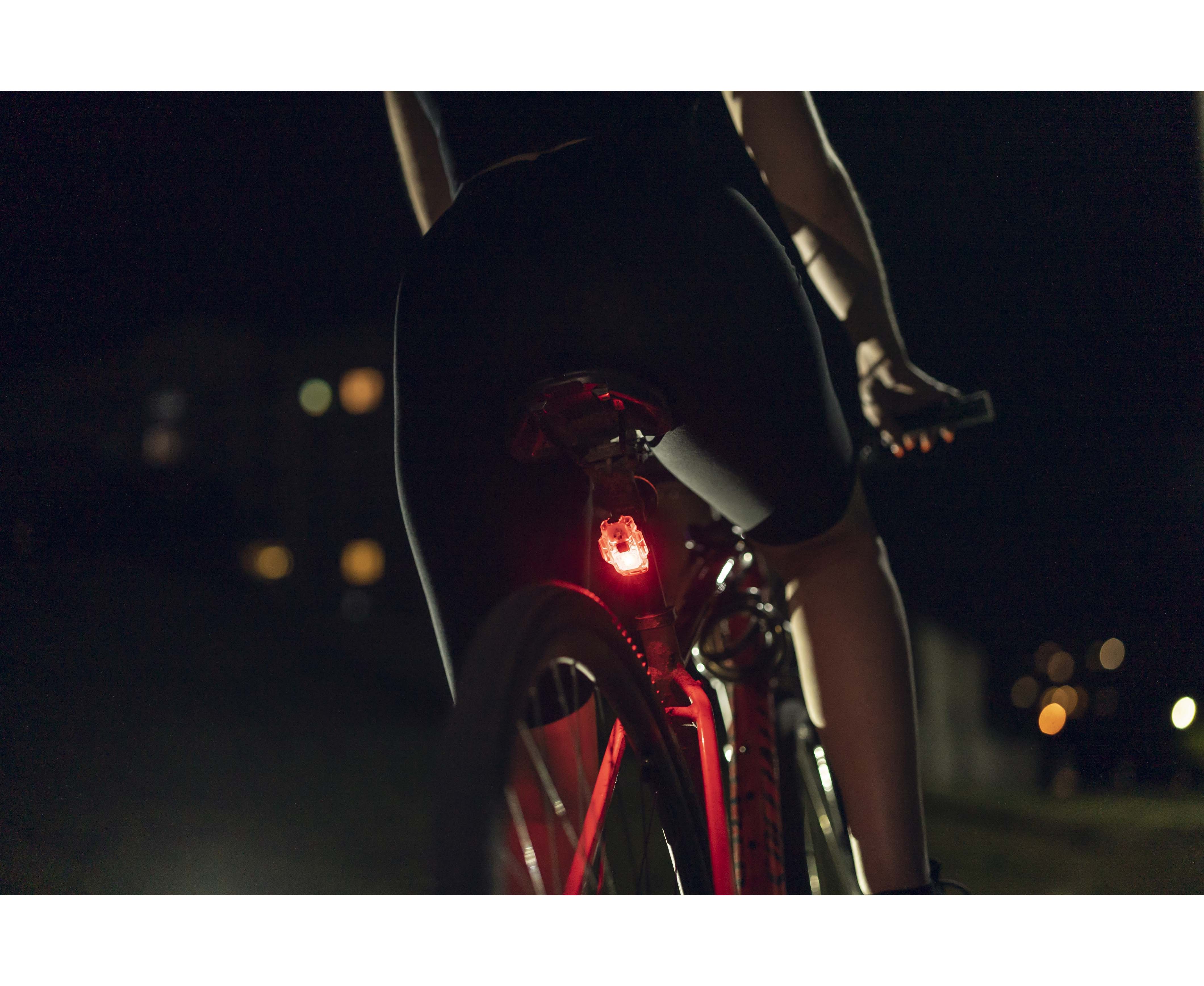 - Highly sensitive sensors detect bicycle deceleration, after which additional red LEDs turn on and the brightness of the flashlight increases to 43 lm