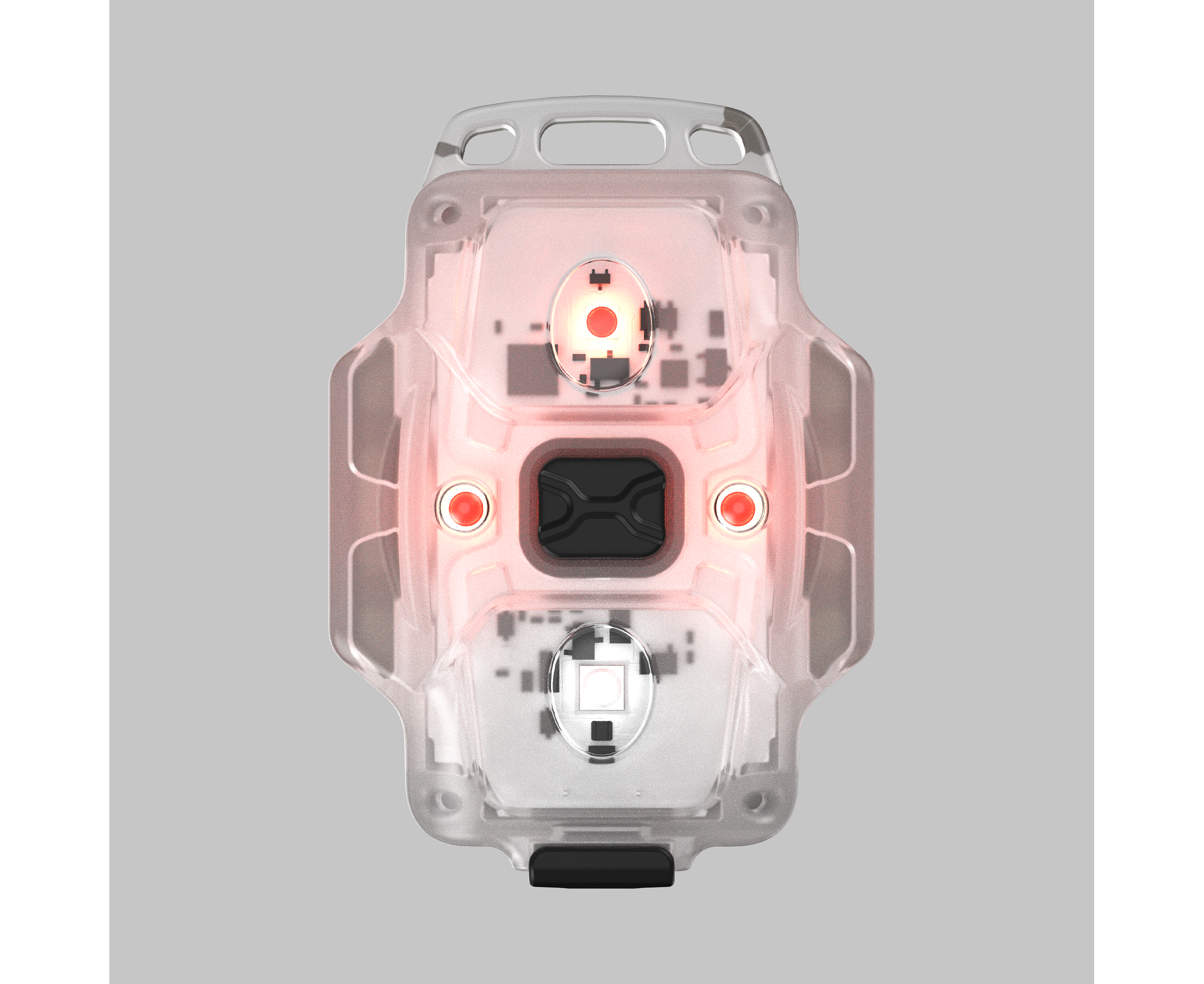 In addition to the white light LED, Crystal Pro is equipped with three red light LEDs. The main red light LED provides a maximum output of 30 lumens. Two side red light LEDs operate in bicycle brake light mode.