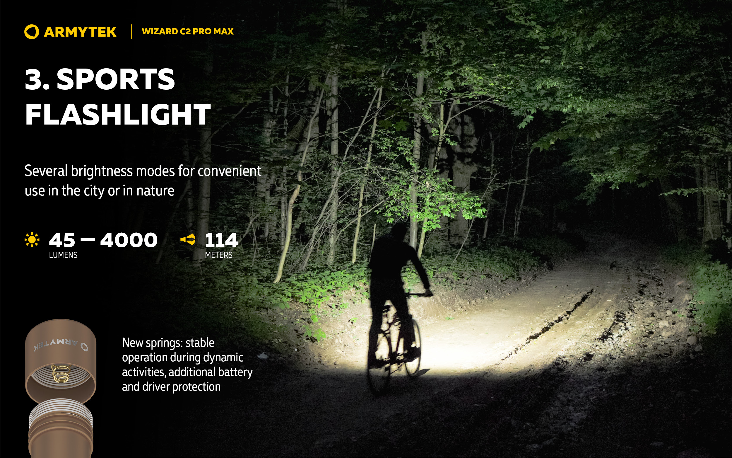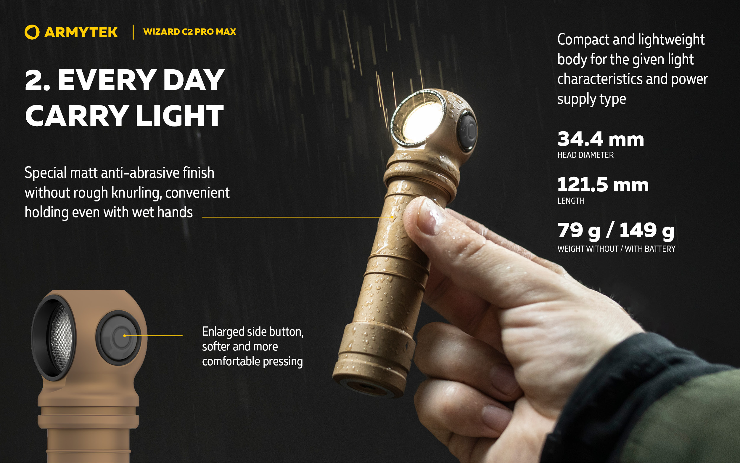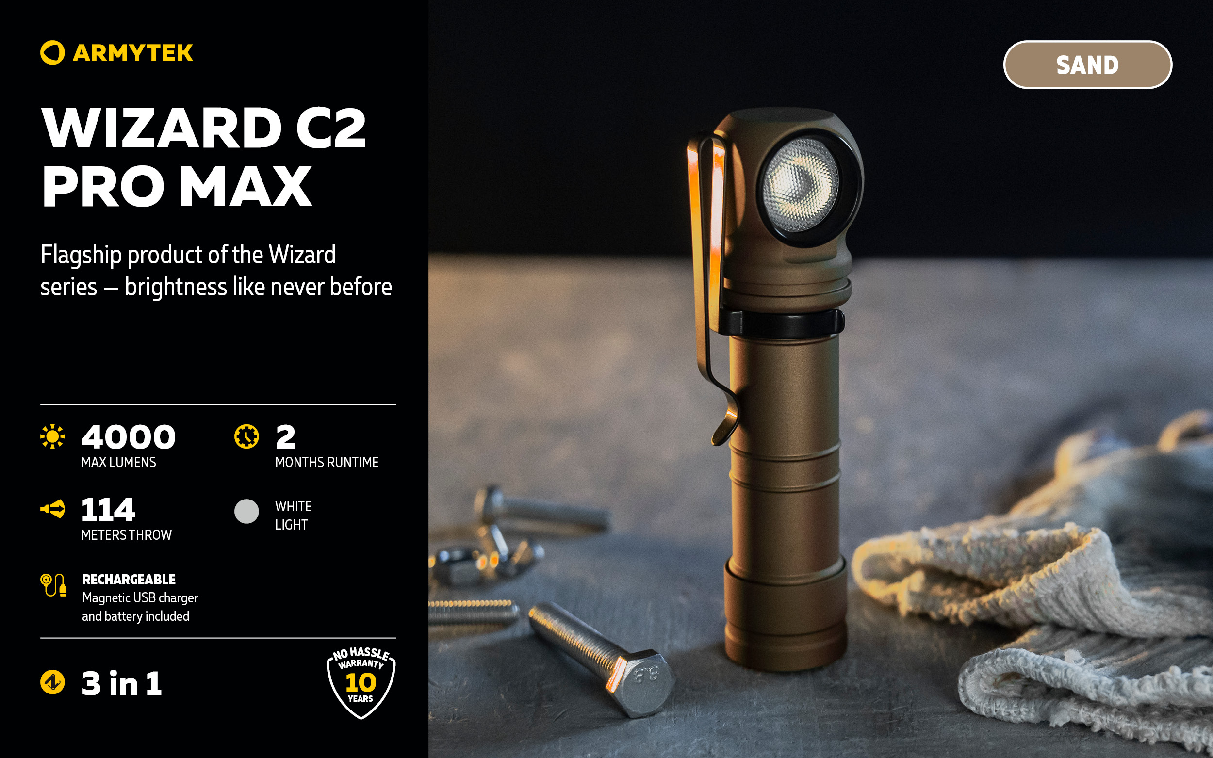 Wizard C2 Pro Max is the newest model of the demanded all over the world multifunctional Armytek Wizard lineup. Not just bright, but astonishing light output of 4000 lumens.