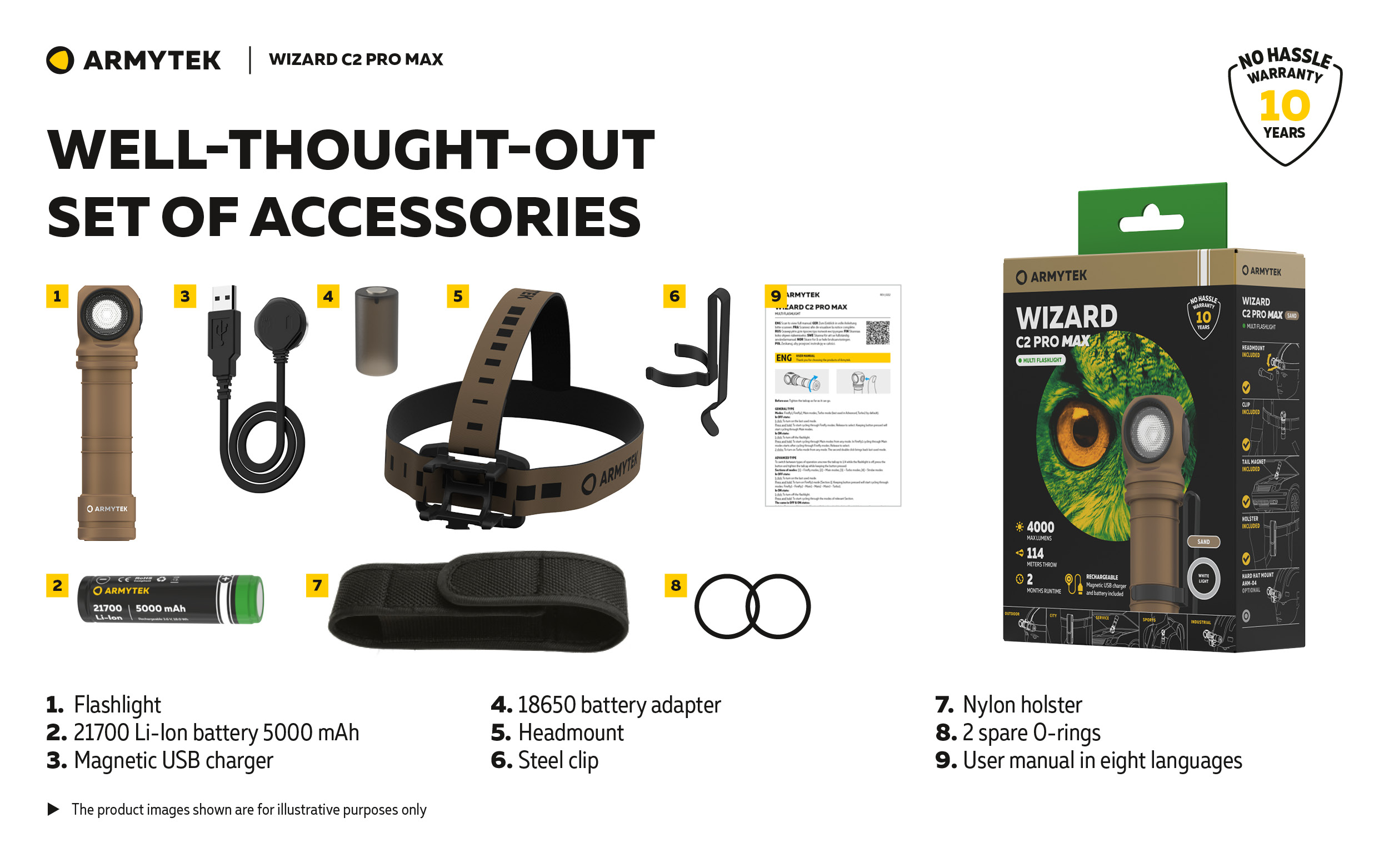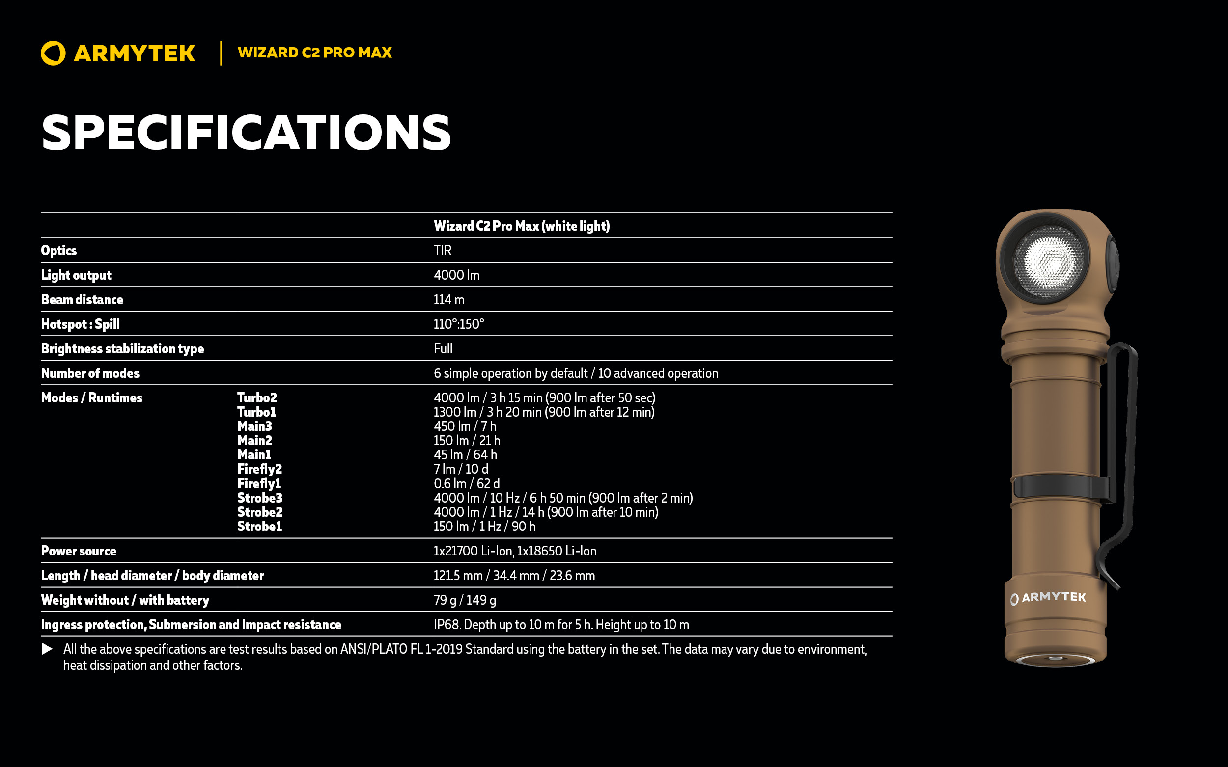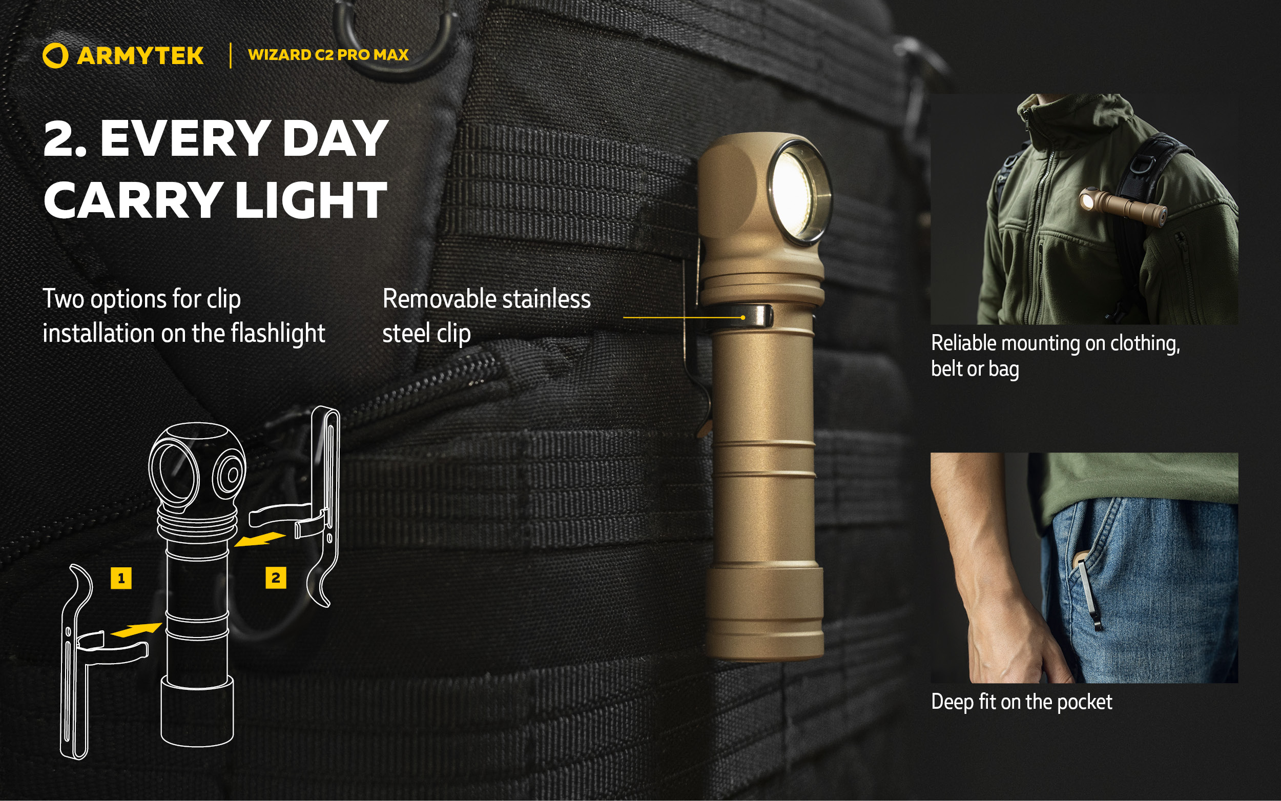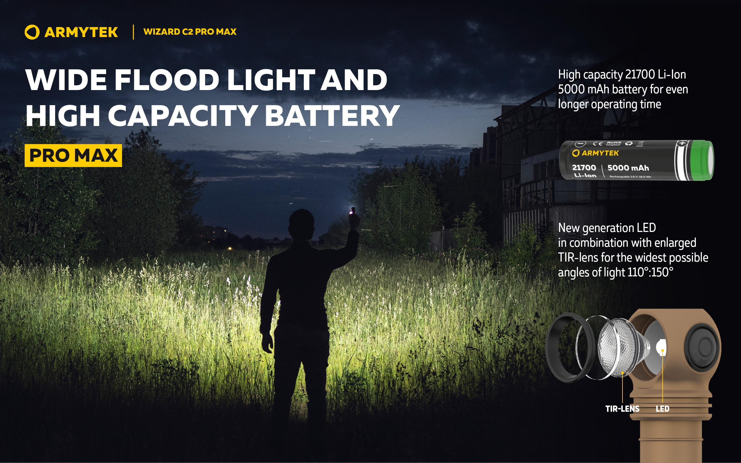 Wizard C2 Pro Max is the newest model of the demanded all over the world multifunctional Armytek Wizard lineup. Not just bright, but astonishing light output of 4000 lumens.